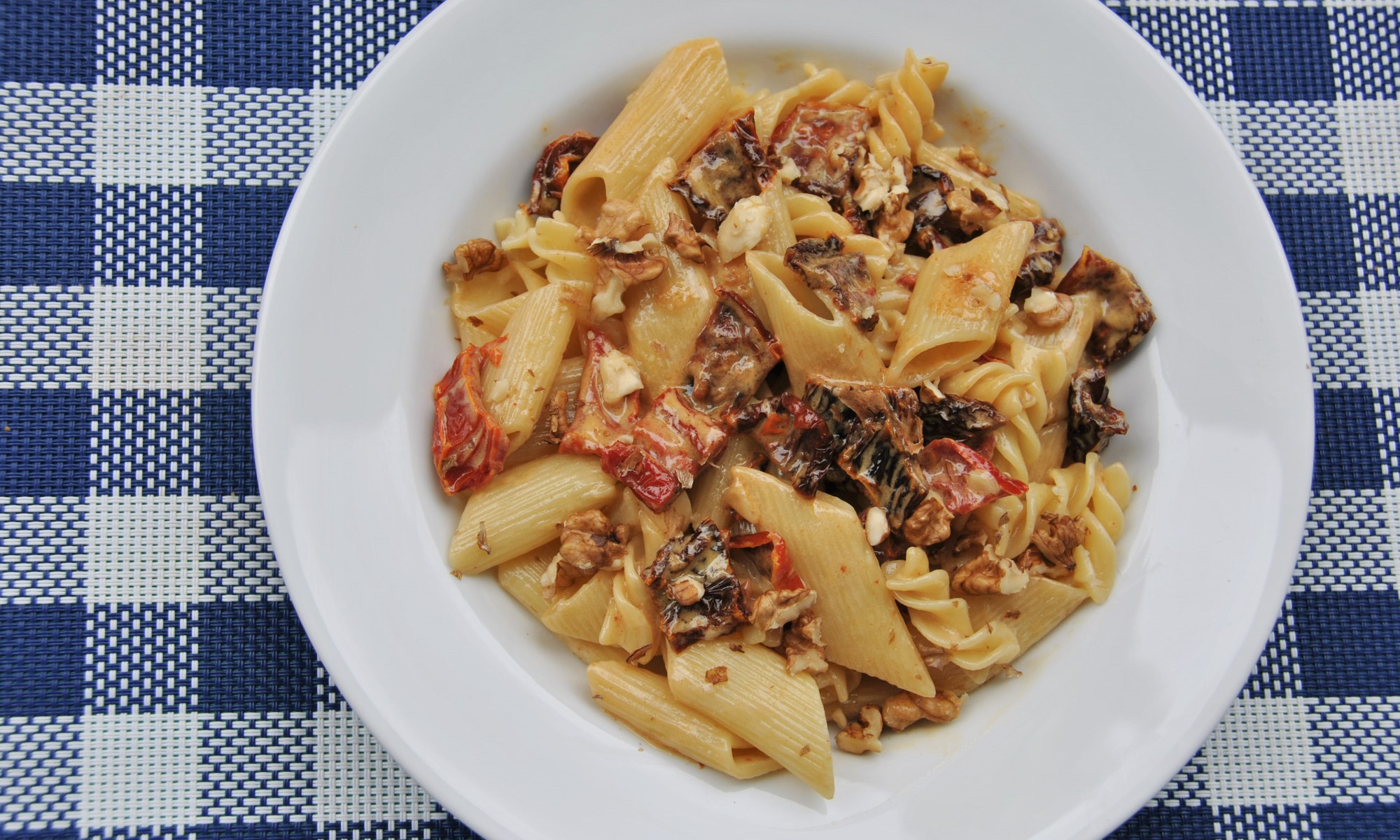 5. Agrega la pasta cocida a la sartén, revolvé y serví con las nueces partidas por encima y con queso rallado a gusto.