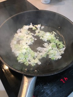 1. Pica y saltea en aceite de oliva 2 cebollas de verdeo a fuego medio.