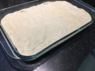 4. Una vez levada la masa, aceita poquito la placa o molde que vas a usar para cocinarla y acomoda la masa en el monde apretándola así la desgasificas. Tapalo y espera que duplique de nuevo el volumen (45/60min).