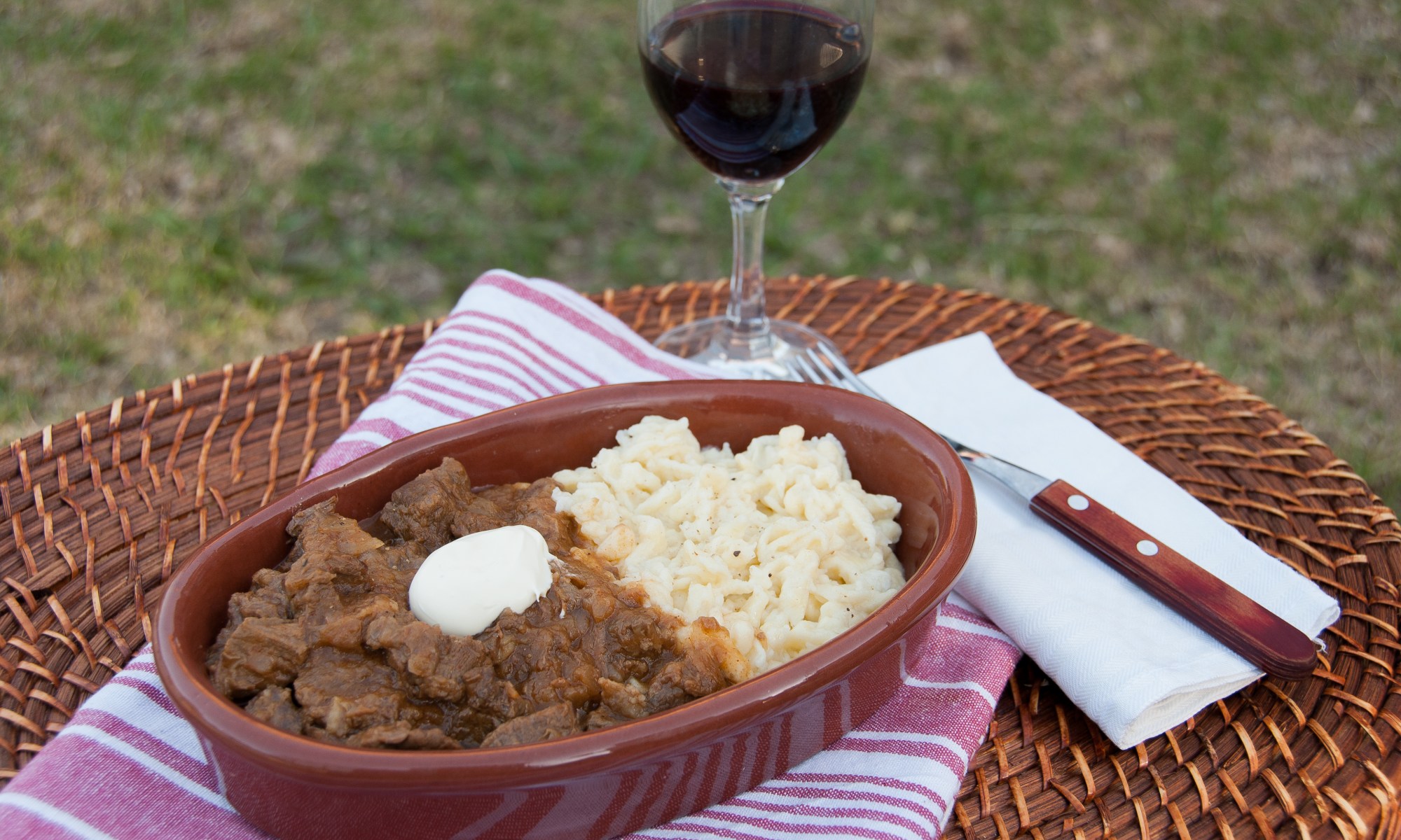 El goulash lo podes servir acompañando con crema agria, para que le sume frescura al plato. La haces mezclando una taza de crema de leche con una cucharada de limón, revolvés y dejas que la crema espese.